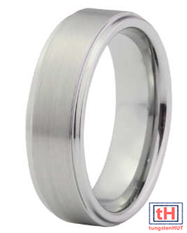 Brushed Tungsten Carbide Ring With Stepped Edges 6MM