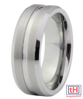 Brushed Tungsten Carbide Ring with Groove and Beveled Edge 8MM
